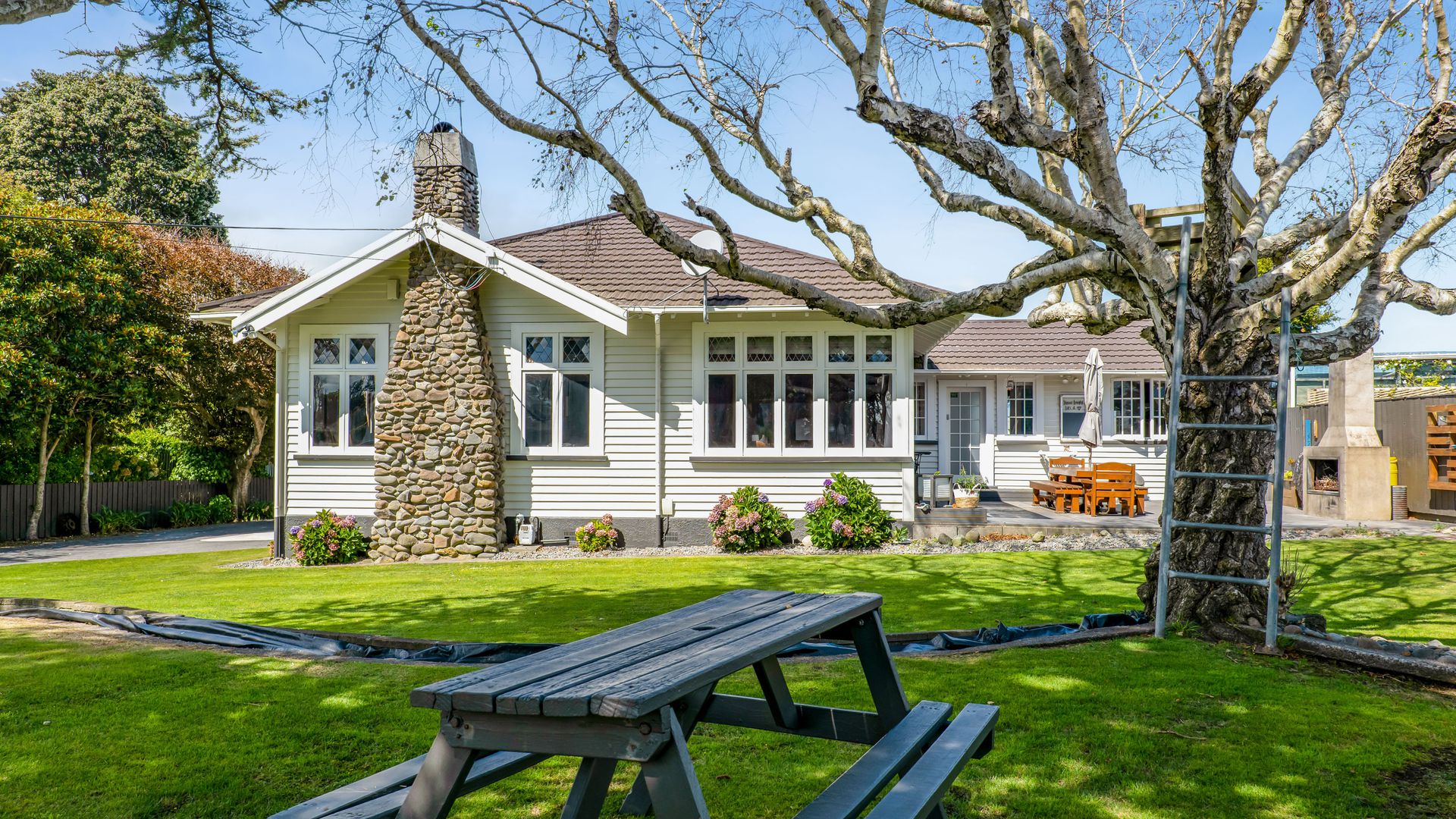 Traditional of its era with solid bones and classic 1920's charm. Roadside presence is hard to ignore and local character lovers would have undoubtedly admired this home over the years. Well known for spacious living, the story begins in the entranceway, flow through to the large separate living where the eye catching stonework open fireplace is undeniably a huge feature of this room along with the lovingly restored woodwork. Additional separate dining through to the renovated functional kitchen. Access the outdoor fire and purpose built macrocarpa slab to entertain your friends and family. Three good size bedrooms with extra large master, feature window and positioned for morning sun. Lovely renovated family bathroom, handy office in hallway and bonus of two toilets. Complimented by some great chattels ... Infinity, Moisture Master, heatpump and quality drapes, top and bottom insulation, rewired and exterior repaint 2021. This fully fenced 1214 sqm section offers a secure space for both children and pets. Minimalistic gardens with some mature trees, great concrete pad for off street parking and complimented with an automatic double garage, automatic single garage, wood and storage sheds! The charm, the space, the section, the location.